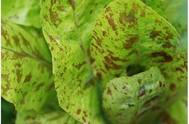 Folhas verdes com manchas roxas únicas