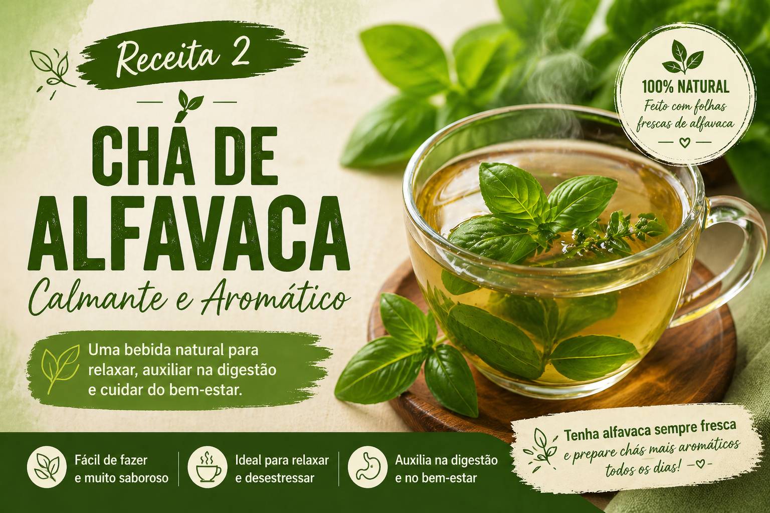 🌿 Dica: Ter alfavaca em casa facilita o preparo de chás sempre frescos e mais saborosos.